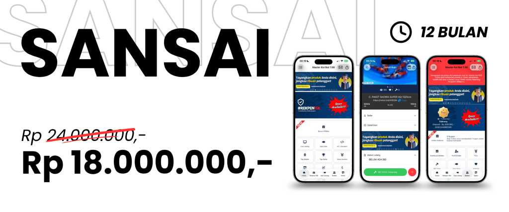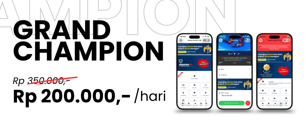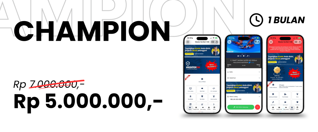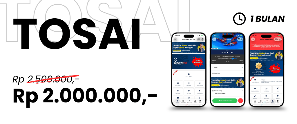 Penayangan Iklan berupa gambar Leader Board dan Flyer produk atau jasa yang akan ditampilkan pada aplikasi mobile Master Koi BOT selama 12 Bulan Tayang. (Free Merchandise Ekslusif)
