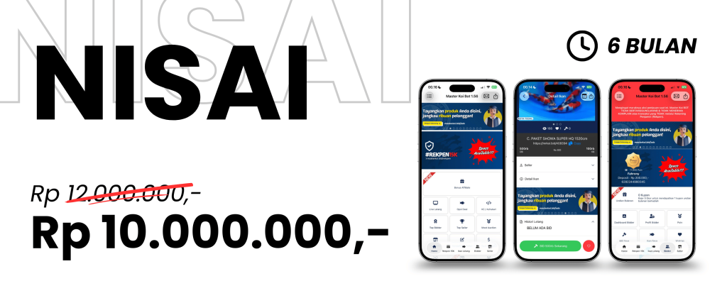Penayangan Iklan berupa gambar Leader Board dan Flyer produk atau jasa yang akan ditampilkan pada aplikasi mobile Master Koi BOT selama 6 Bulan Tayang. (Free Merchandise Ekslusif)