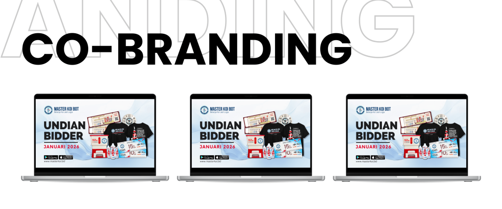 Kami juga menawarkan kerjasama Co-Branding berupa produk dari pengiklan yang nantinya akan didistribusikan untuk program khusus dari Master Koi BOT. Adapun program tersebut antara lain: Undian Bidder, Most Auction, Top Bidder, Top Seller dll.